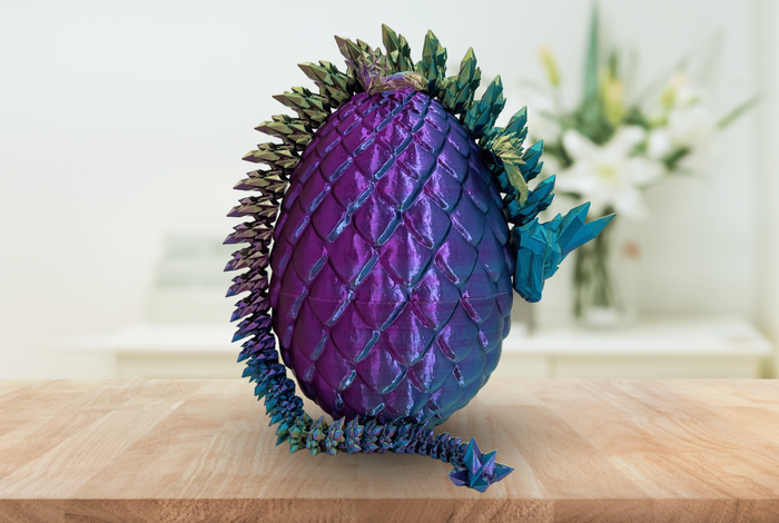 Introducing 3D Printed Dragon in Egg, a unique decor piece that combines a realistic dragon structure with intricate texture. Crafted from recyclable materials, this piece is not only visually stunning but also serves as a stress relief and fidget toy, adding a touch of whimsy to your home. Perfect for those who value sustainability and functionality, enhance your living space with this enchanting creation that balances beauty and practicality with an eco-conscious approach.
